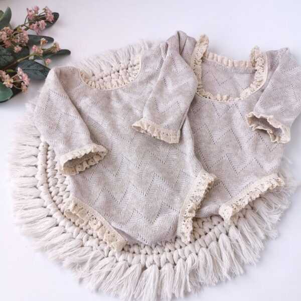 Beżowe body z koronką na roczek