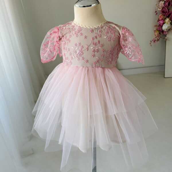 Różowa sukienka koronkowo-tiulowa