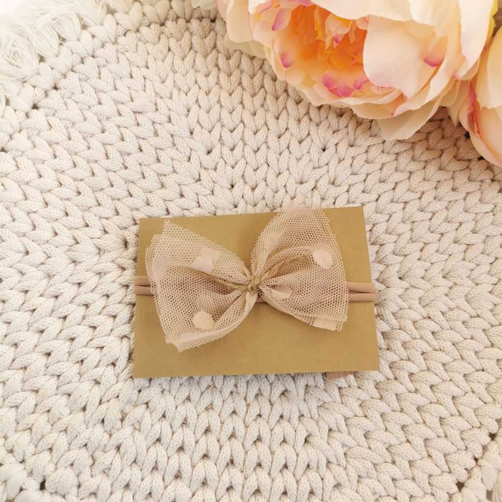 Wiązana opaska beżowa kokardka w delikatne kropki.