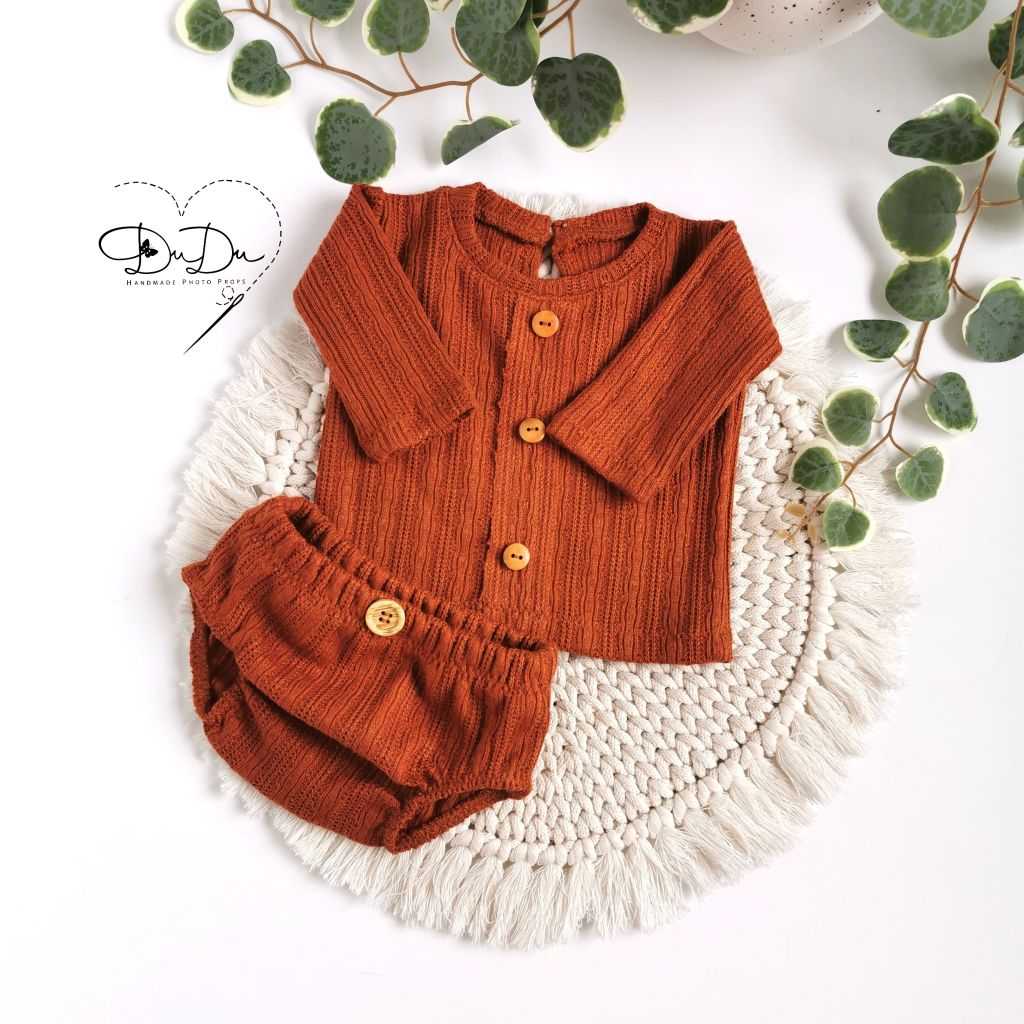 Sweterek i majteczki z miękkiego. elastycznego materiału w kolorze rudym.