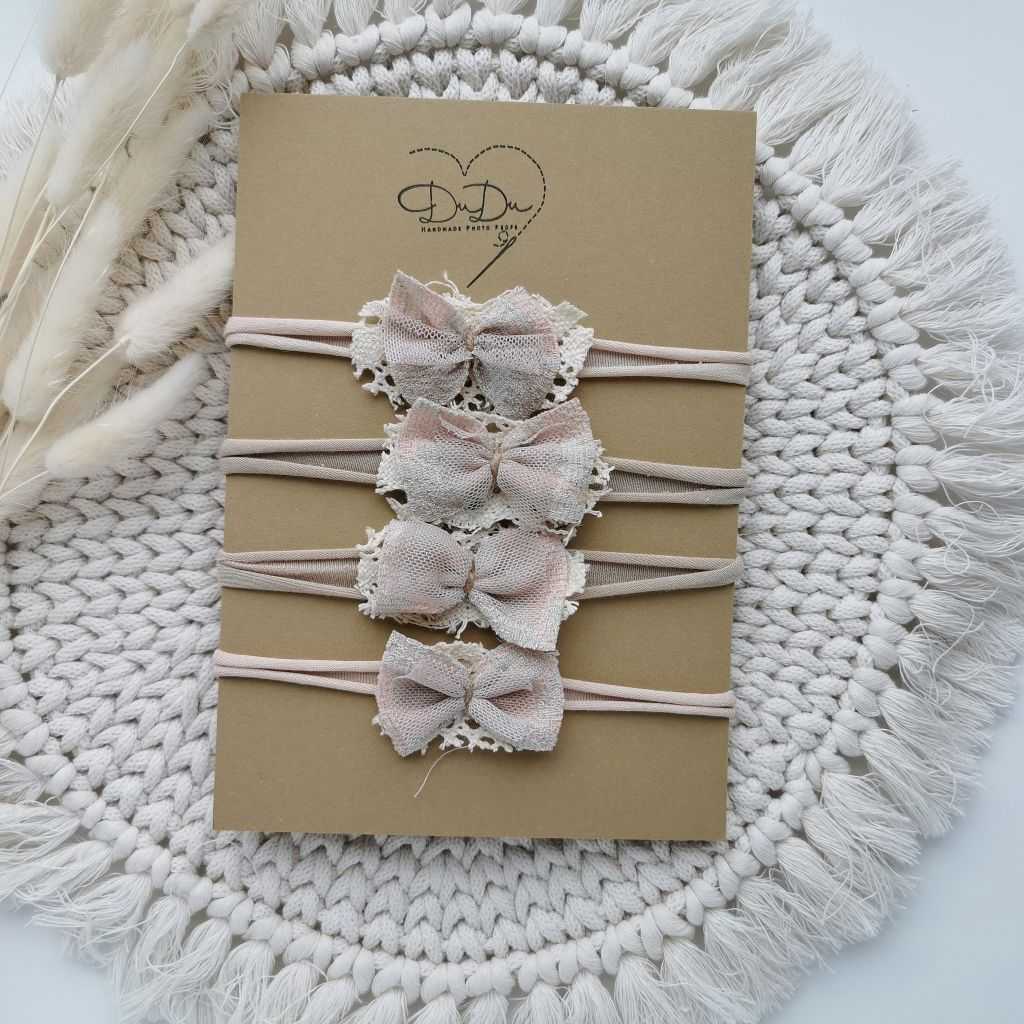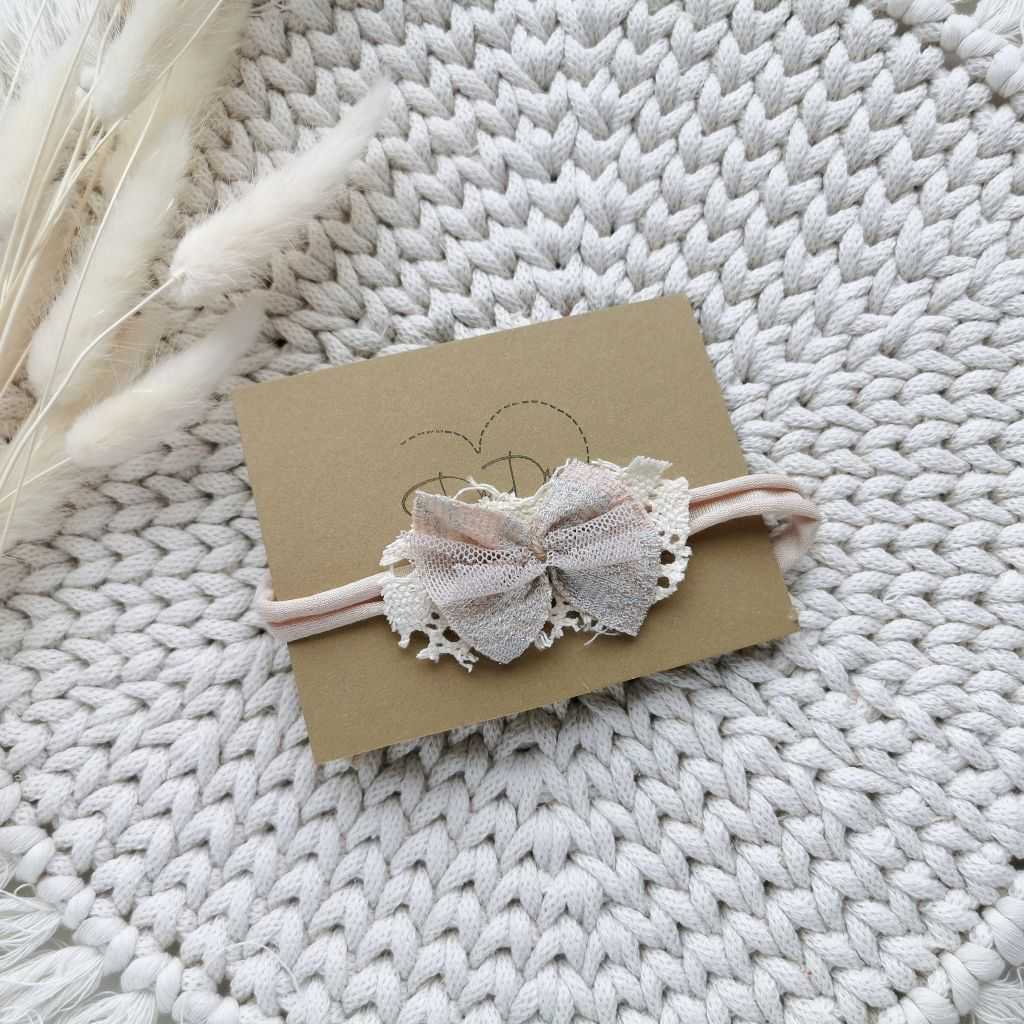 Opaska na elastycznym pasku z kokardką w kolorze pudrowego różu.