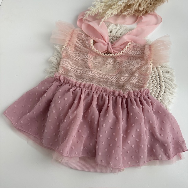 Sukienka z majteczkami w kolorze brudnego różu. Rozmiar na roczek.